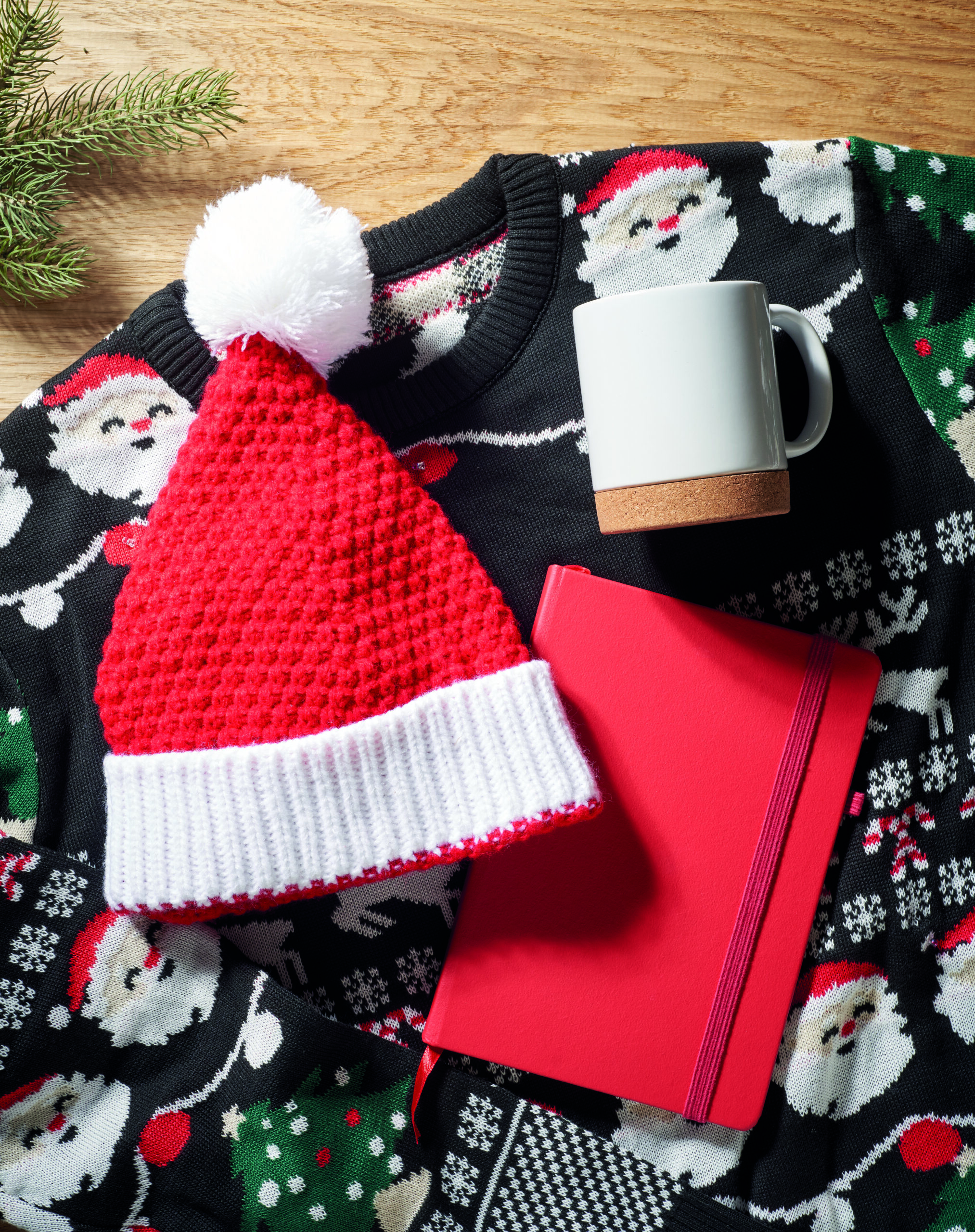 Świąteczna czapka z dzianiny z mankietem i pomponem z miękkiego, rozciągliwego akrylu.