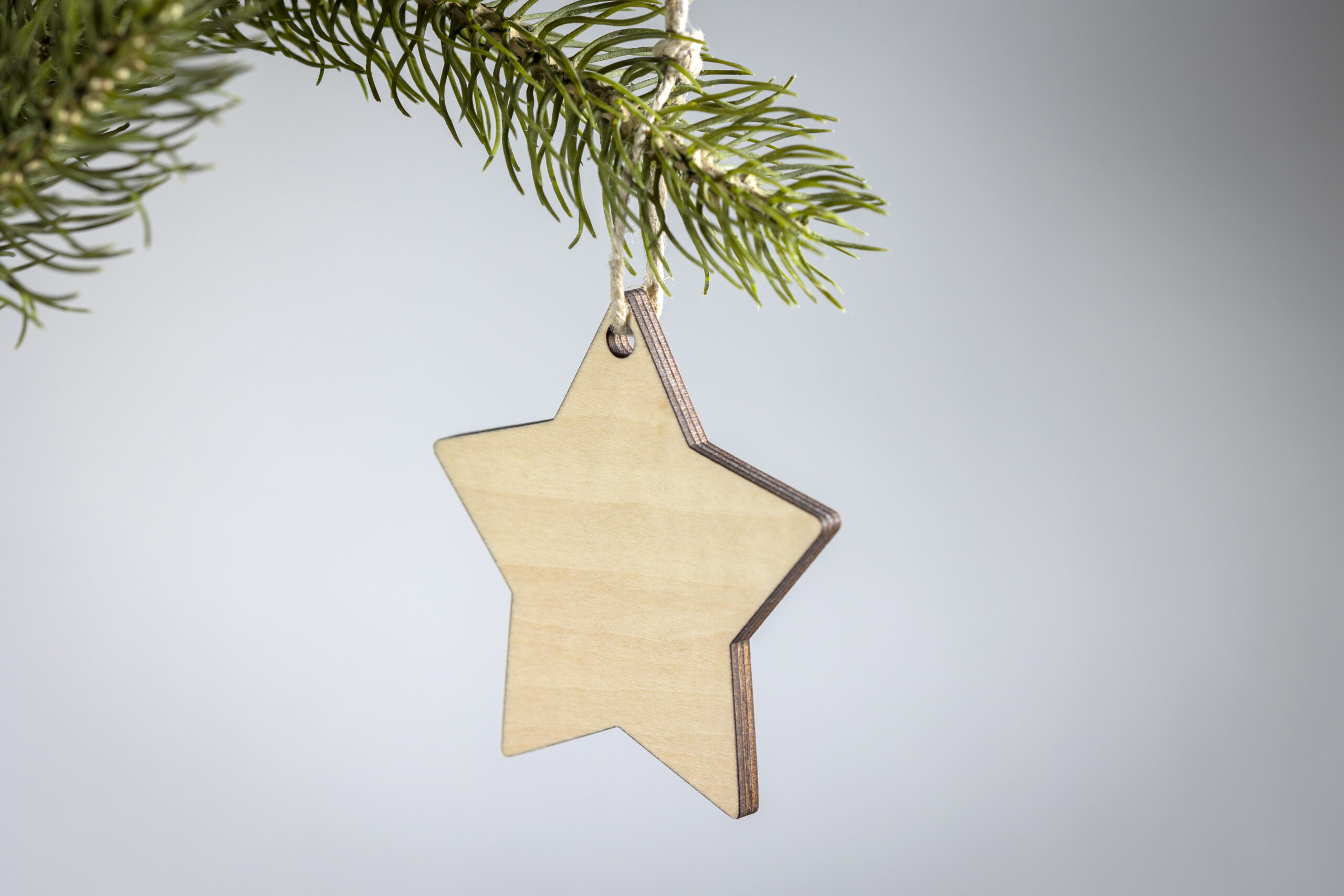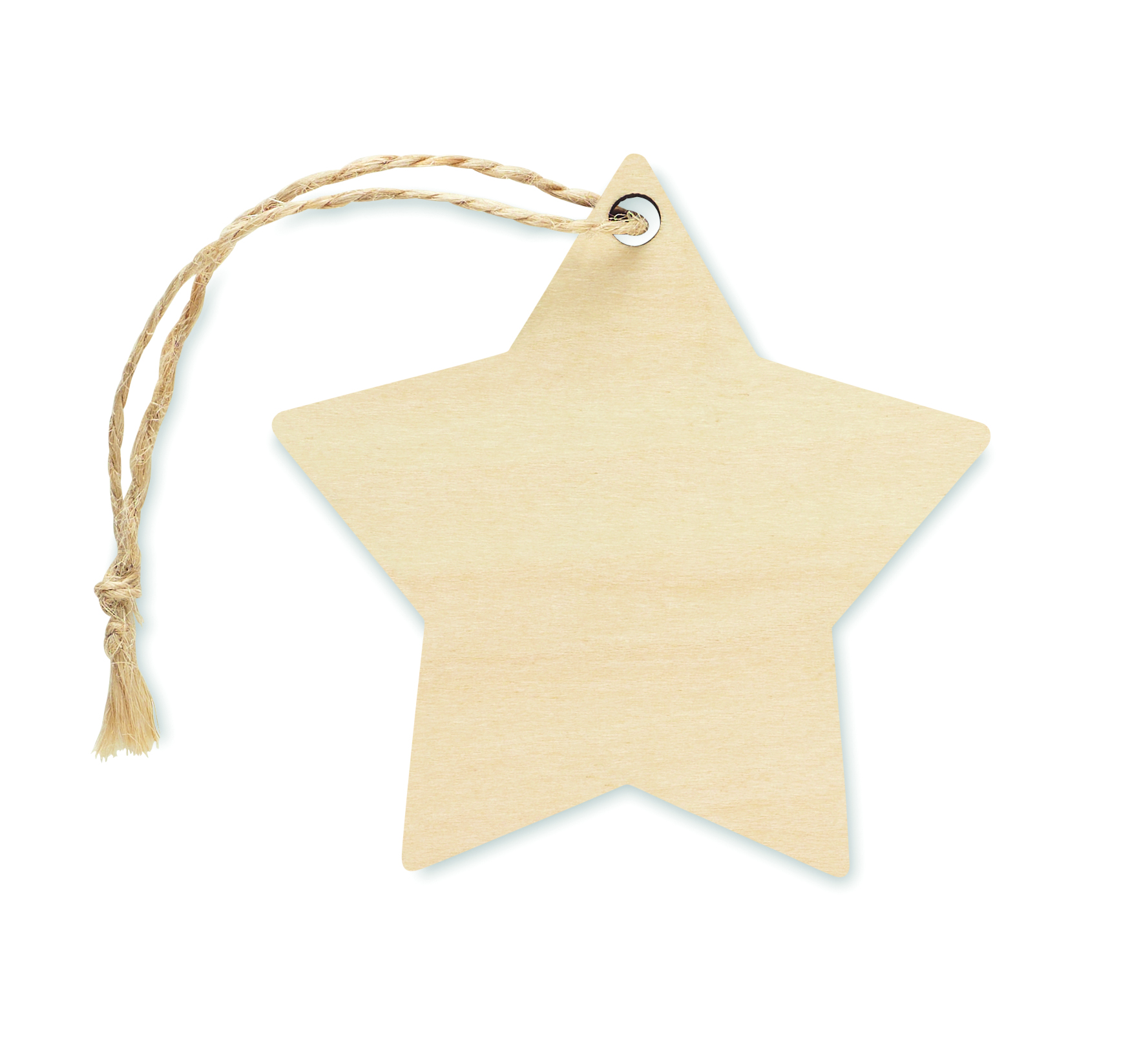 Ozdoba świąteczna ze sklejki, z jutowym sznurkiem, do sublimacji, w kształcie gwiazdki. Biały nadruk nie jest możliwy.