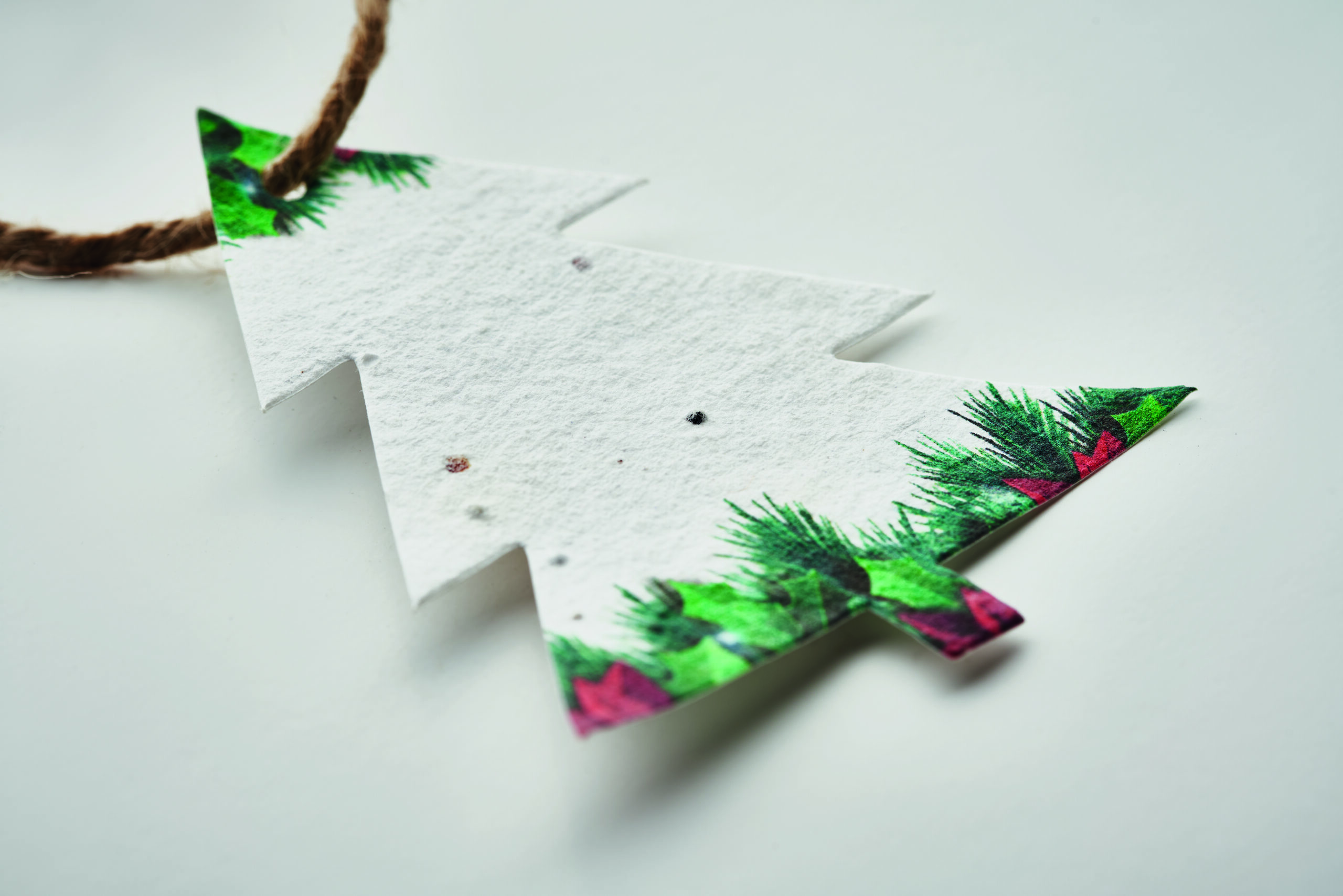 Miękki papier z nasionami dzikich kwiatów w kształcie bombki choinkowej z jutowym sznurkiem. Po wykorzystaniu posadź osłonę i obserwuj, jak rośnie na niej łąka dzikich kwiatów. Wyprodukowano w UE.